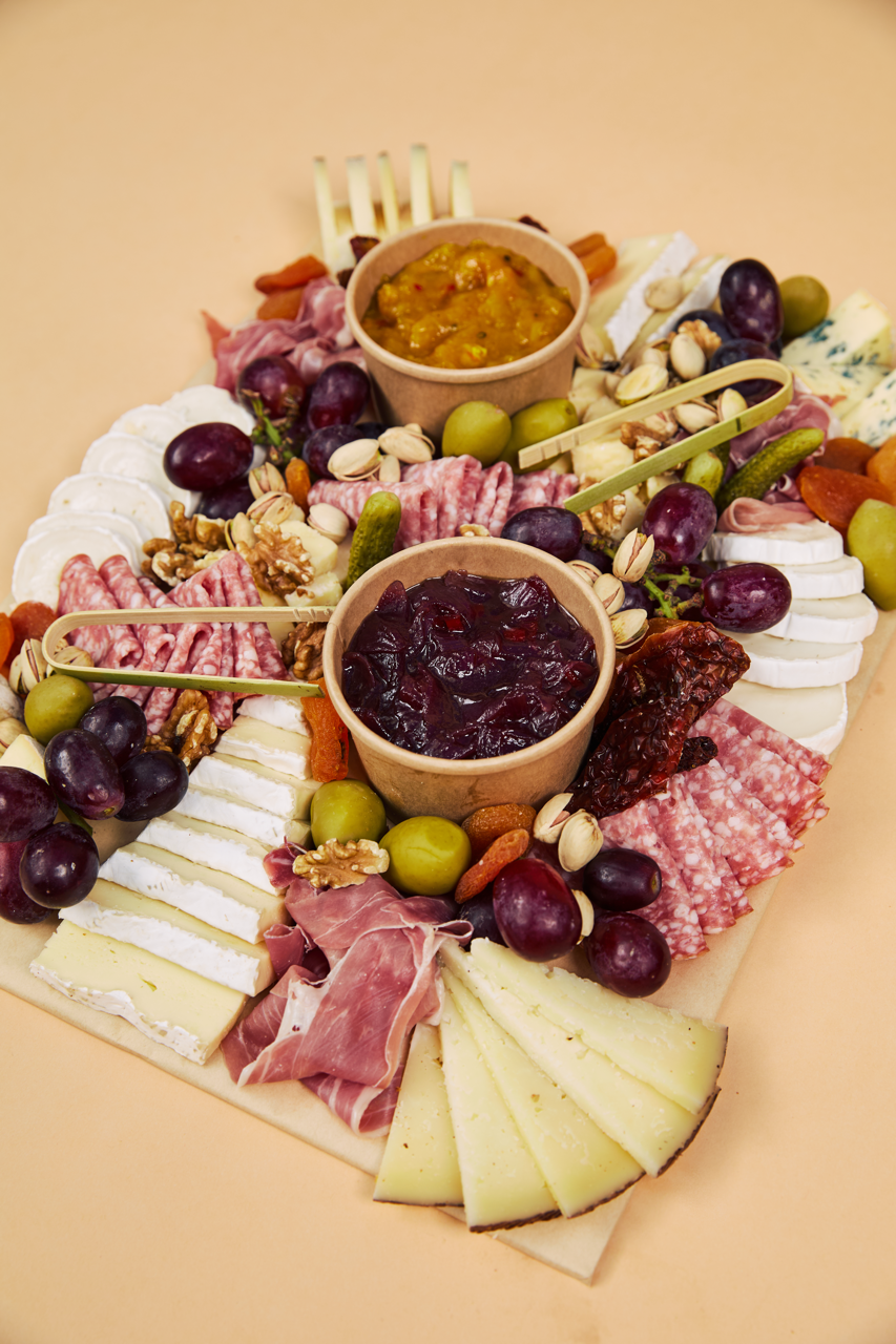 Ob für Events, Brunch oder gemütliche Abende: Hier treffen edle Käsesorten, Wurst- und Schinkenspezialitäten, frisches Obst, Nüsse und kleine Snacks zu einem harmonischen Genuss zusammen.